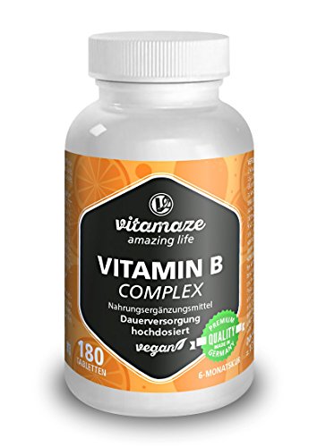 bieten Vitamin B-Complex hochdosiert vegan 6 Monatsvorrat Vitamin B1, B2, B3, B5, B6, B7, B9, B12 Made-in-Germany ohne Magnesiumstearat, 100% GELD-ZURÜCK-GARANTIE