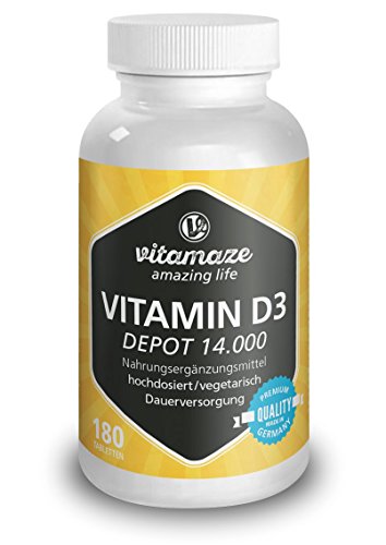 KAUFEN Vitamin D3 Depot 14.000 IE hochdosiert (14-Tage-Dosis), 180 vegetarische Tabletten (teilbar), Qualitätsprodukt-Made-in-Germany ohne Magnesiumstearat, jetzt zum Aktionspreis und 30 Tage kostenlose Rücknahme! 1er Pack (1 x 108 g)